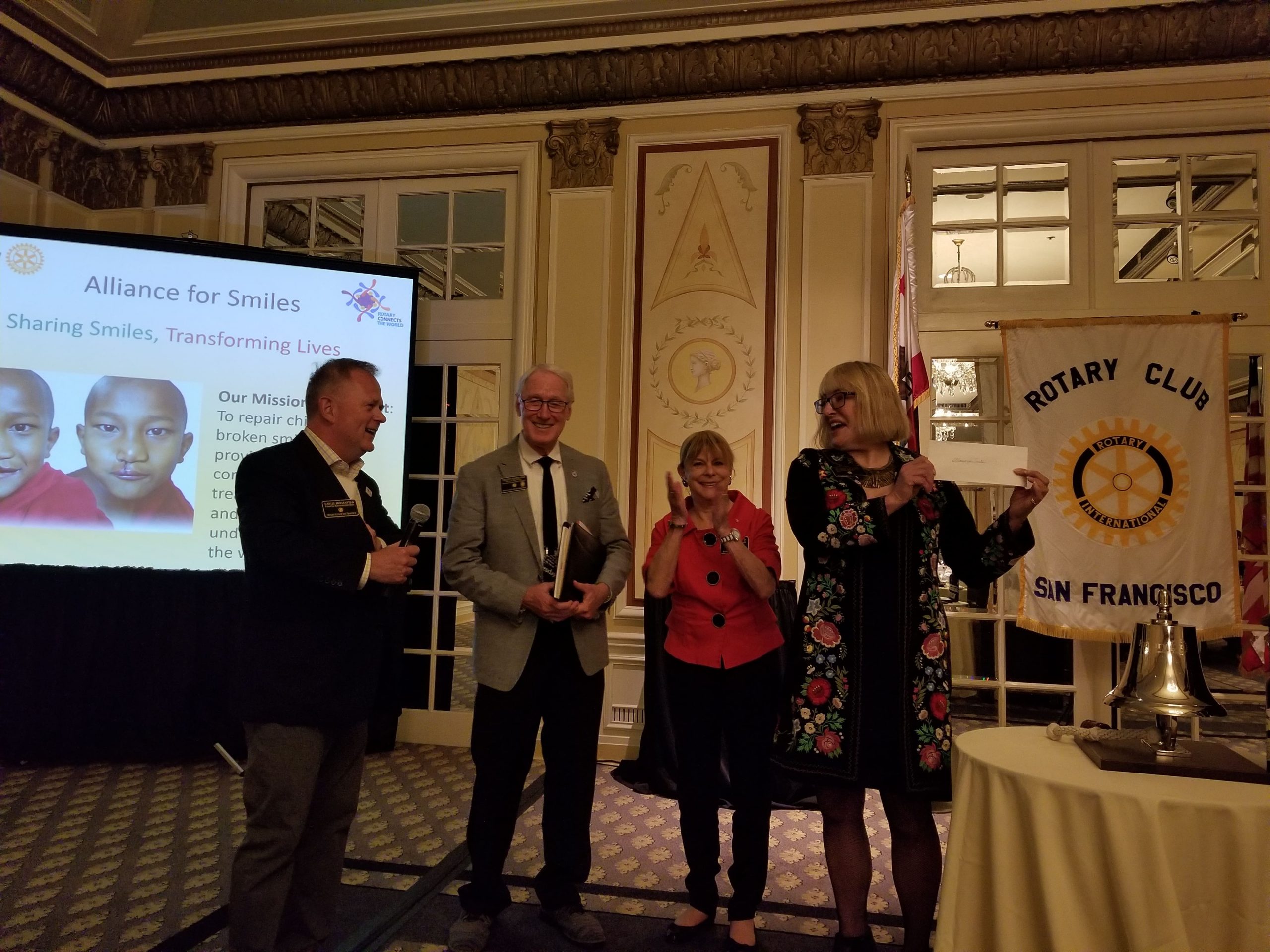 AfS was honored this week at SF Rotary #2’s meeting with the presentation of a $14,000 grant towards our 2020 Honduras mission. It was a much appreciated and needed gift to help us reach another 90 children with life-changing surgery. If that wasn’t enough, long-time supporter Allan Herzog challenged members to a match in honor of our 15th anniversary year which yielded a surprise $2,800 for us.