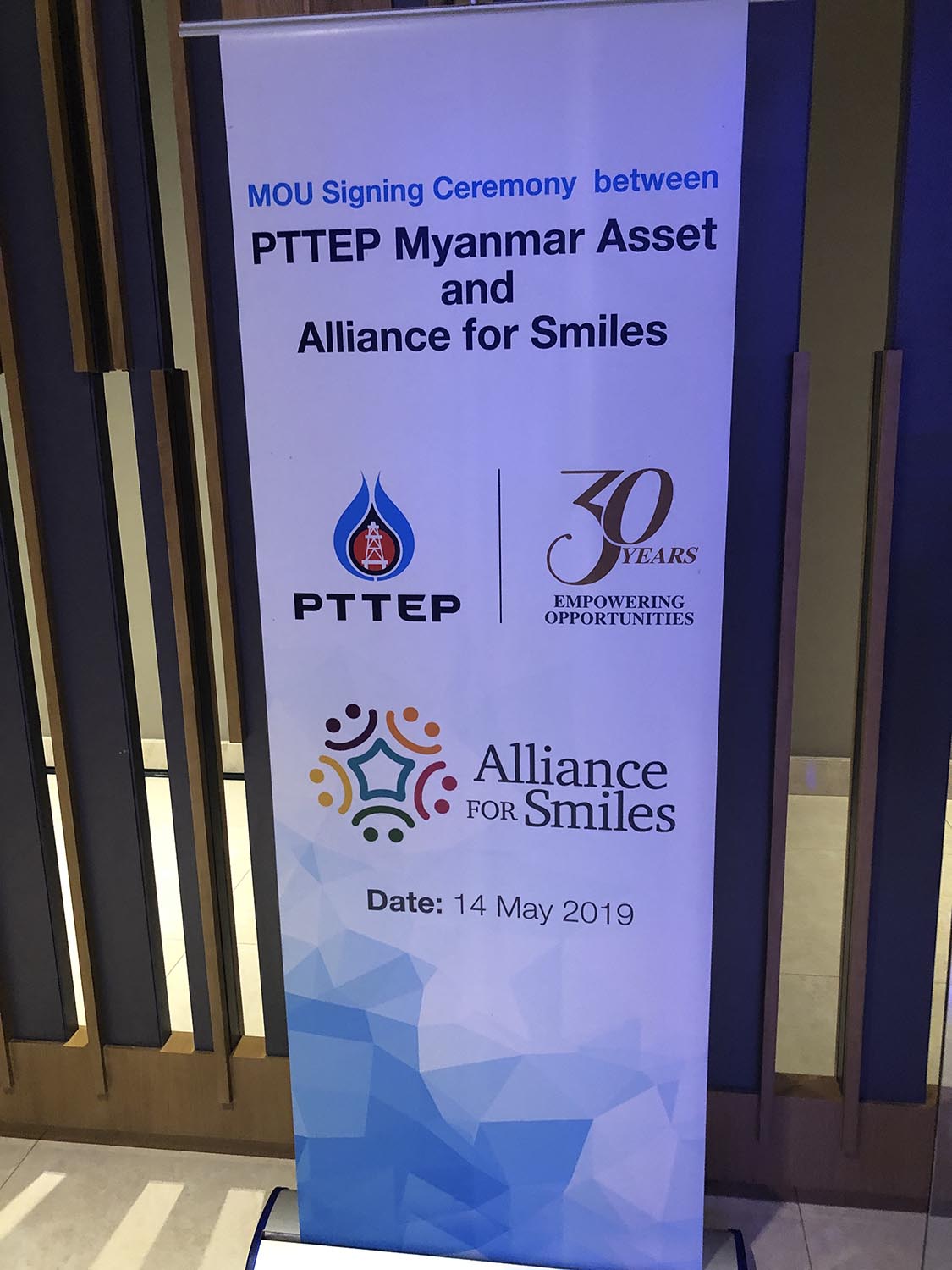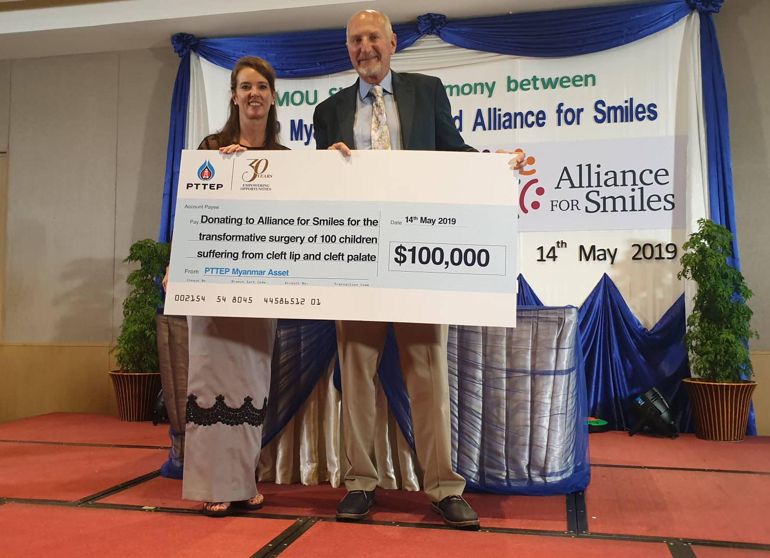 AfS is the beneficiary of a $100,000 donation from oil company PTTEP in Myanmar to help change the lives of 100 cleft children in need, as part of their social responsibility or CSR program.