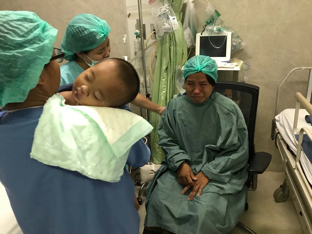 One of the last patients today in the recovery room, and her mother has an emotional moment after seeing her baby after surgery.