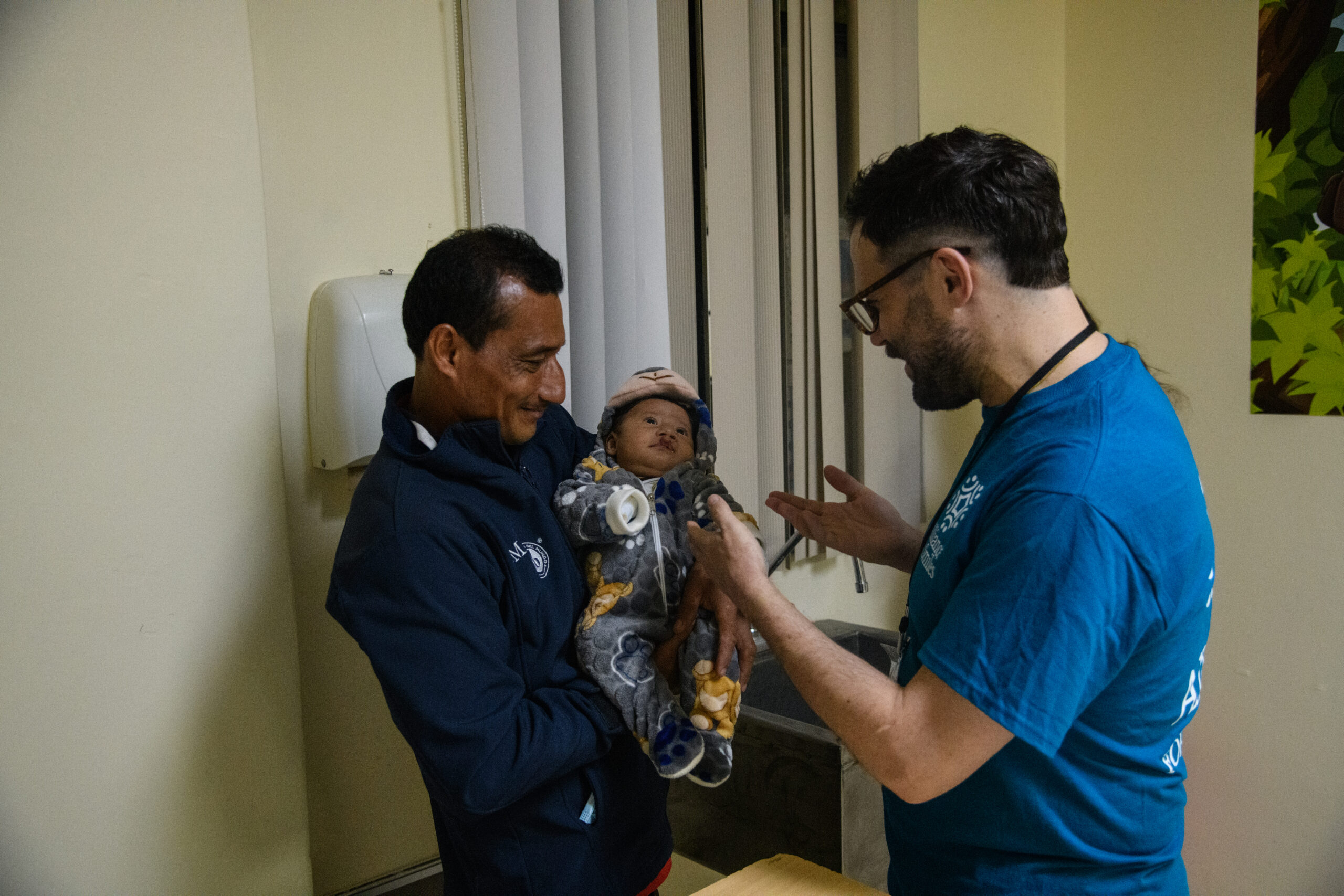 Surgeon Chris Zarella connecting with a patient and the proud father