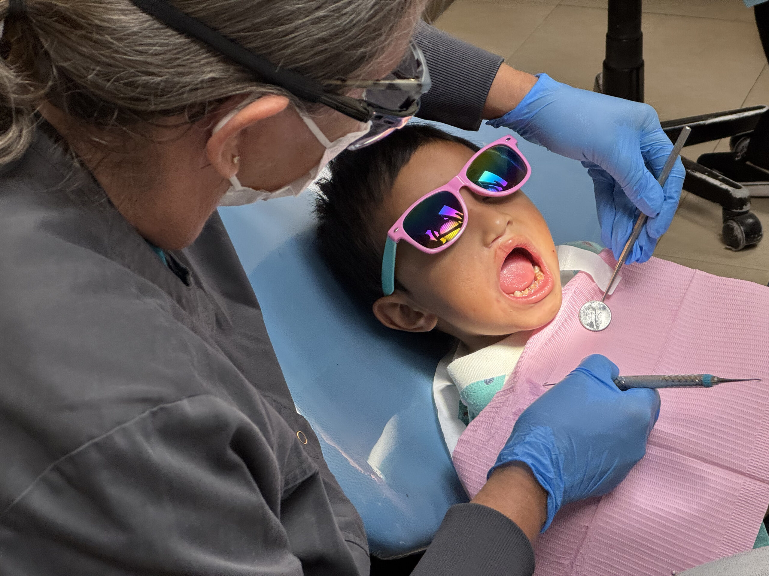 Cool little guy getting his teeth cleaned by dental hygienist Andrea