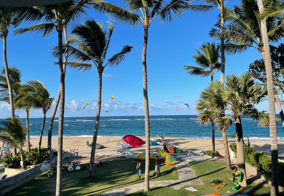 The condo is situated in a terrific location on the northern coast of the Dominican Republic, in Kite Beach, Cabarete. Kite Beach is best known as an international destination for kite-boarding. Surfing, wind-surfing, wing-sailing, and paddle-boarding are all popular pastimes there.