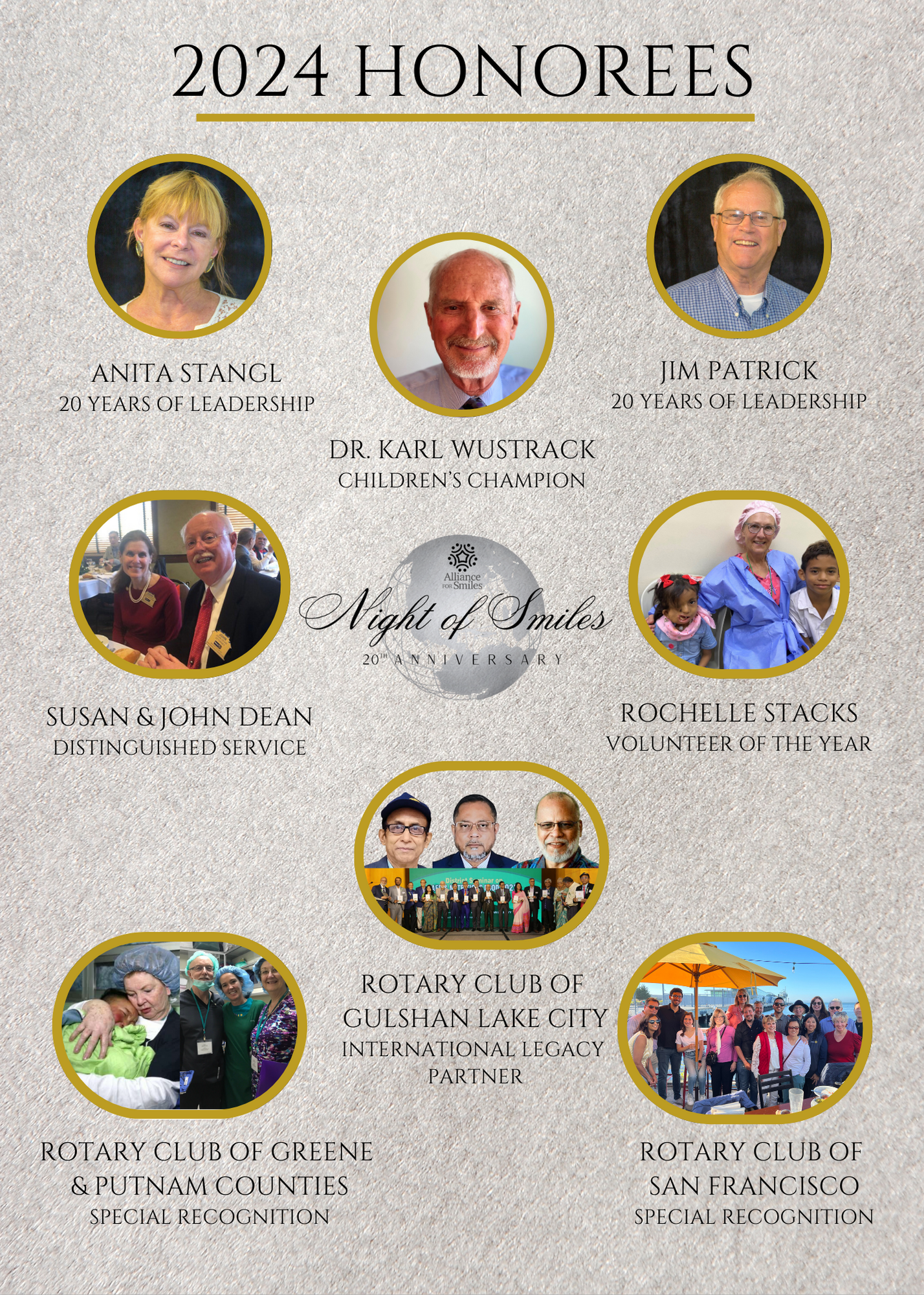 The night will begin with an array of passed appetizers, live music, and opening silent auction bids, then proceed into a program to honor the life-changing work of Alliance for Smiles and some of its most dedicated volunteers and donors.