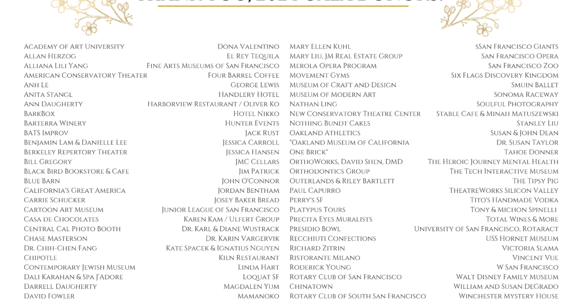 Indulge in an intimate, unforgettable, multi-course gourmet dining experience prepared for you by Alliance for Smiles co-founder & incomparable chef Anita Stangl and sous chef Margaret Miley, who will be your gracious hosts and gourmands. You will enjoy an exquisite, customized 5-course gourmet meal for up to 6 people, complete with fine wine pairings & an open bar in an beautiful and elegant home located in the Marina area of San Francisco. You will work with Anita & Margaret to schedule this on the perfect date (within the next year) and they will help create the perfect personalized menu for you and your guests. All that, and you donāt have to worry about setting up or cleaning up, as it will be hosted in the gorgeous home of a Gala Committee member.