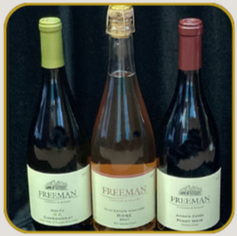 Freeman Vineyard & Winery is a pioneer of cool-climate Pinot Noir & Chardonnay. Their acclaimed wines are served at State Luncheons, to President Obama, vice-president Kamala Harris, & Japanese Prime Minister Fumio Kishida. This exclusive wine set trio includes a 2021 Chardonnay, 2015 Pinot Noir, and 2021 Rose Brut from Freeman Vineyard & Winery.
