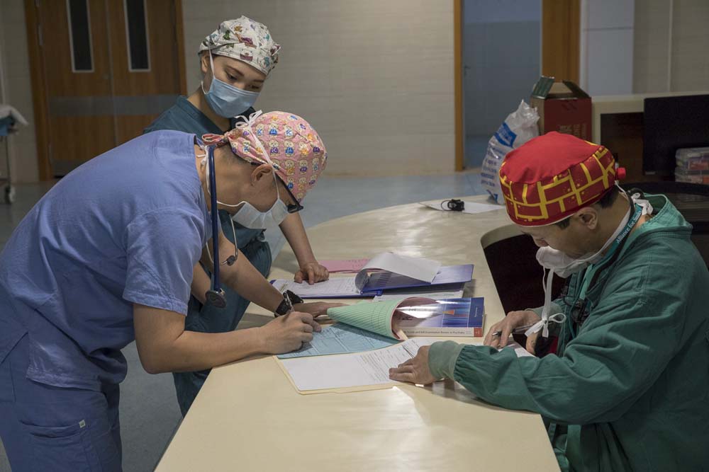 • Surgeon Gerry and Anesth. Ye filling out all the paperwork for Yue.