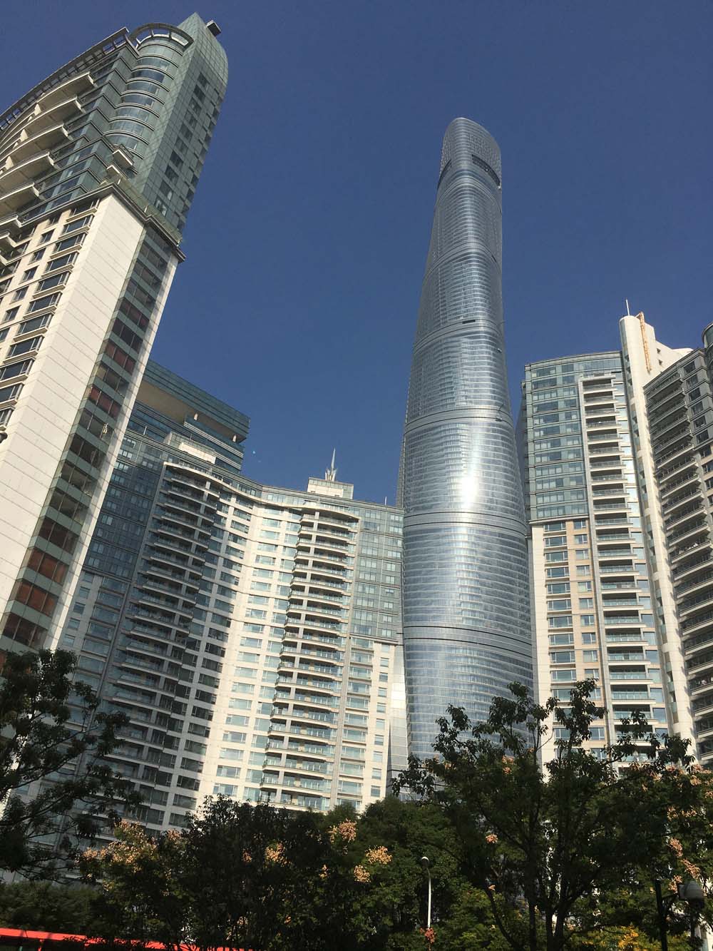 The building that looks like a vacuum cleaner attachment is the tallest building in China and the second tallest building in the world