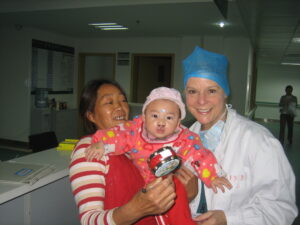 Anita Stangl: There was a little girl from Wenzhou, China, who was found in a garbage can after birth, all still bloody. She had been taken in by two migrant workers who were scrounging through the garbage to find things that they could sell, and they found this newborn baby. They took her in, and they brought her to us because she had a cleft palate.