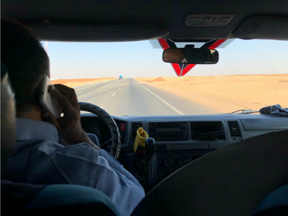 As you look west over the Nile River, there’s a strip of green south to north, as far as they can see, A few feet beyond that you see the light brown desert. Driving west across the Nile once you get to the desert, it goes on further than you want.