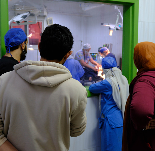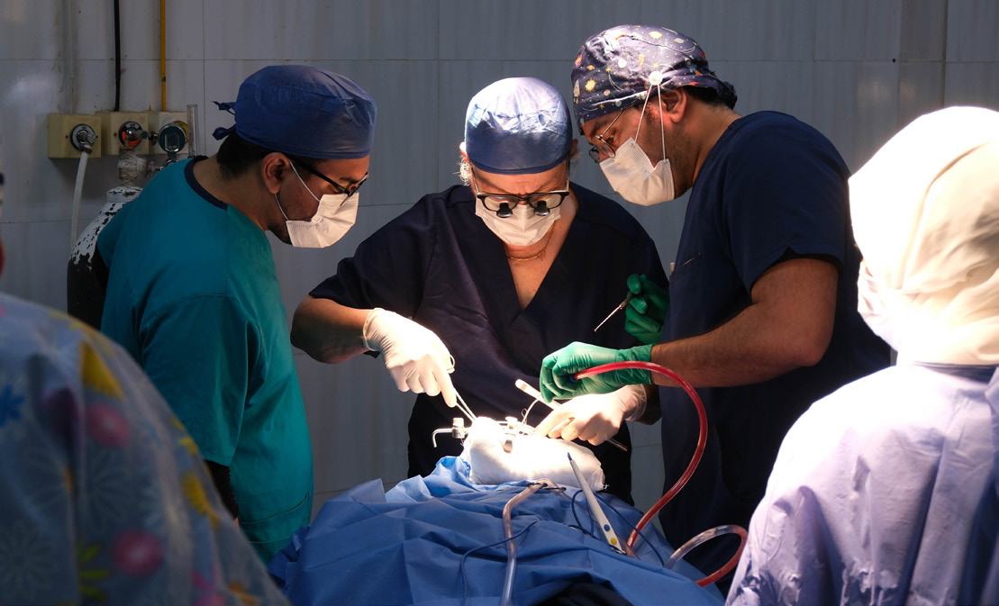 For our first patient, 11 year old Abdullah, this was his sixth surgery – and hopefully his last! Dr. Kristin Stueber determined a pharyngeal flap was the best course of action to restore his palate. This was of particular interest to Dr. Mohammed who said he had never seen one done. He scrubbed in with Dr. Kristin and got hands-on training while several residents observed around the table and from the hall.