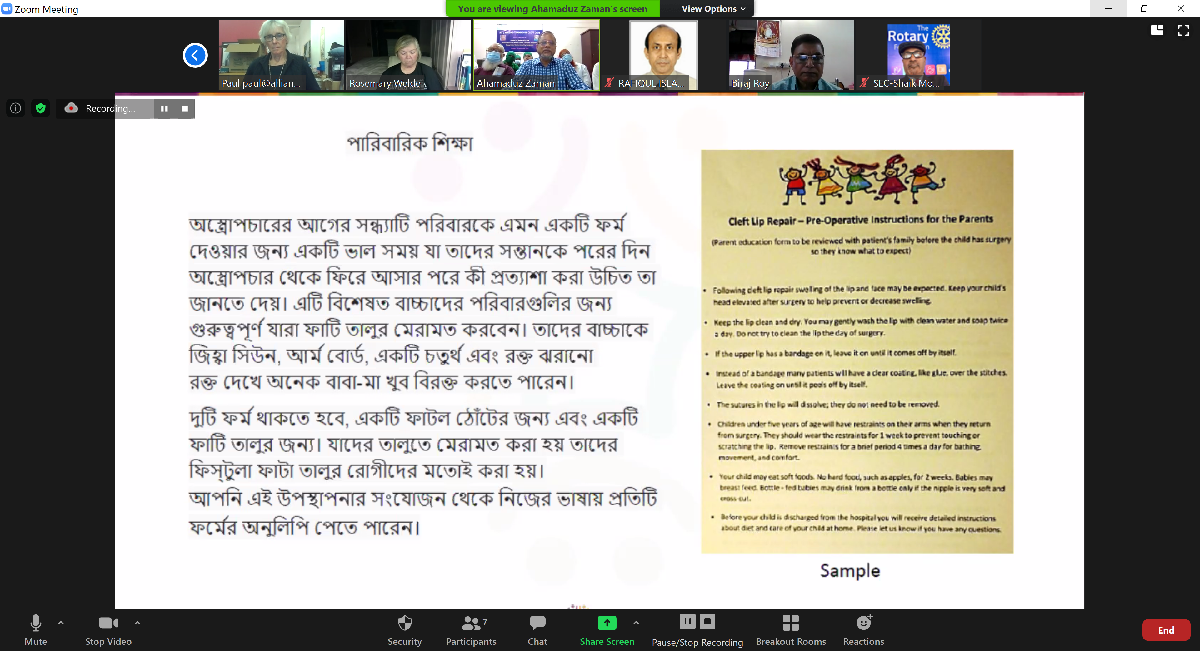 When we realized that it would not be possible to resume standard missions in the near future, we immediately reached out to our international partners to gauge their interest in virtual education, and the vast majority responded positively. We then recruited AfS expert leads in relevant disciplines and conducted needs assessments among the hospitals to determine what would benefit them most. Training in nursing care came up right away as both an area in high demand from our partners and one that would work well within this format. Our partner hospitals in Bangladesh, Guatemala, and Honduras were immediately interested. Therefore we began the process of translating presentations into the appropriate languages and recruiting teachers who were fluent.